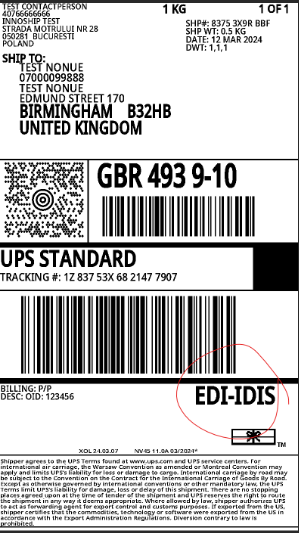 2. Created Label will have EDI-IDIS text on it ( see label below)